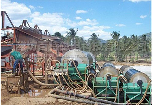 海沙选铁设备主要是对海沙进行选铁操作的磁选设备,海沙矿分为两类型磁铁矿,一种是类似于图们江及莆田型的海沙铁矿,该类矿属易选型磁铁矿。铁矿自身有害元素少,倍受国内钢厂的青睐。另一种是类似于印尼(巴东)、菲律宾型的火山热熔型钒钛磁铁矿,国外多称之为高钛型磁铁矿,该类海沙中铁的品味相对较高,一般从 22 度至 48 度不等。